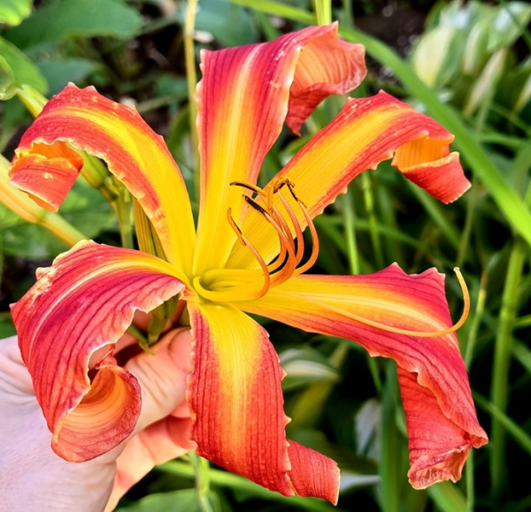 Очень красивый и необычный лилейник! Крупные цветки диаметром 23см! Высота около 100см. Цветет обильно и продолжительно.